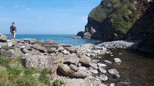This instance of the walk was undertaken primarily because we missed a short section whilst undertaking the Combe Martin to Lynmouth section of the South West Coast Path s couple of years previously. A delay on route caused by a fall and injury left us with short time to get to Lynmouth and therefore we cut across the country to pick up the path at Woody Bay. Revisiting the area enabled us to not only walk the short missed section but to discover a fantastic short circular walk and to view Heddons Mouth at the head of the valley where the stream known as Hanging Water exudes into the sea. The waters filter through a beach composed of large pebbles and boulders. It is well worth walking down to this to take in the sight seems to have every visitor just stand there agog taking it all in.